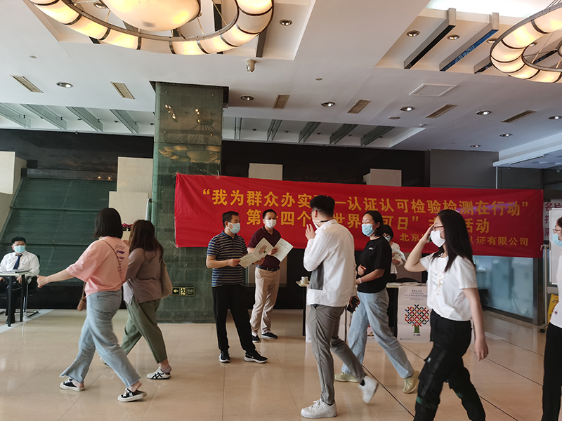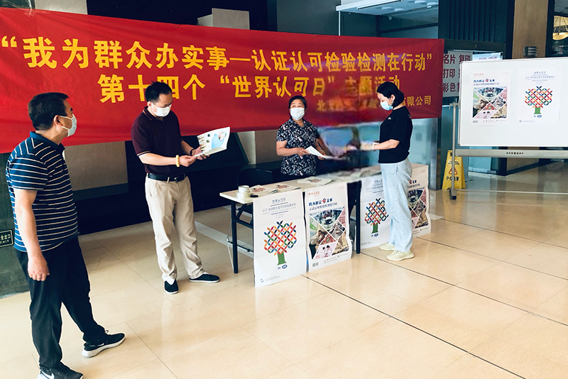 6月9日,是第十四個“世界認可日”,是世界各國宣傳和推動認證認可工作的共同節(jié)日。為了深入貫徹落實國家市場監(jiān)督管理總局(國家認證認可監(jiān)督管理委員會)以及朝陽區(qū)市場監(jiān)督管理局決策部署,推動認證認可檢驗檢測服務民生、服務發(fā)展,北京坤標檢驗認證有限公司作為認證認可行業(yè)的一支生力軍,我們以“我為群眾辦實事——認證認可檢驗檢測在行動”主題宣傳活動為契機,組織公司員工開展了形式多樣的宣傳活動: