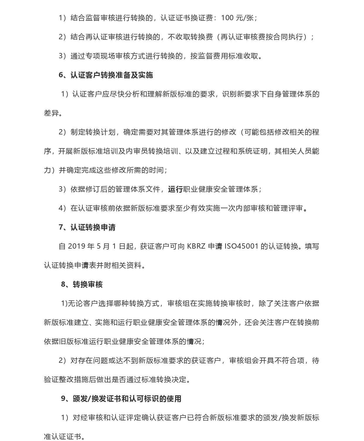 關(guān)于職業(yè)健康安全管理體系認(rèn)證轉(zhuǎn)換公告